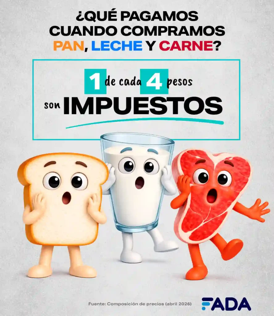El informe pone bajo la lupa la estructura de precios de los alimentos básicos, como desde hace tantos años, abarcando pan, leche y carne concentran impuestos que explican buena parte de lo que se paga en la góndola.